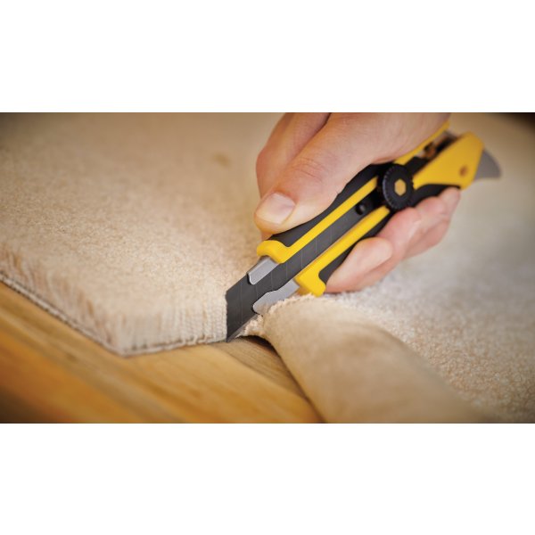 This OLFA® utility knife, with its fiberglass-reinforced body and wrap-around rubber grip, lets you work with confidence.